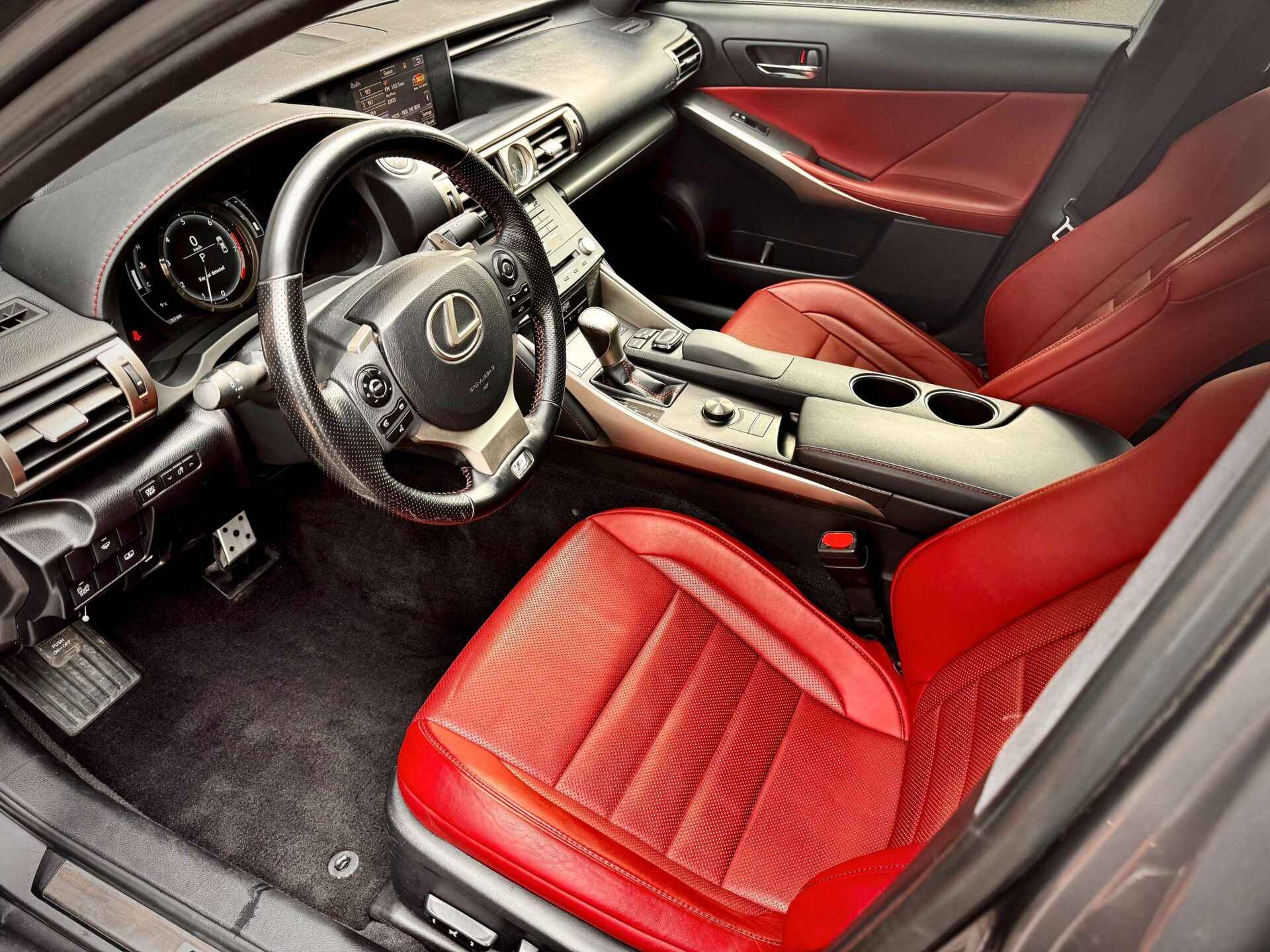 This 2016 Lexus IS 350 F Sport Is Finished In A Brilliant Grey Exterior And Paired With A Red Leather Interior. Fully Loaded w. True Keyless Entry w. Push To Start, Navigation, Back Up Camera, Heated Seats, Heated Steering Wheel, Cooled Seats, Radar Cruise Control, Rear Sunshade, Heated Windscreen, Blind Spot Monitoring, Back Up Camera, Bluetooth Phone Connectivity, Sunroof, F Sport Body Styling, F Sport Interior, F Sport Steering Wheel, LFA Inspired Digital Cluster, Dual Zone Climate Control, Adaptive Variable Suspension, Mark Levinson Premium Audio System, Rear Cross Traffic Alert, Lane Keep Assist, And Much More.