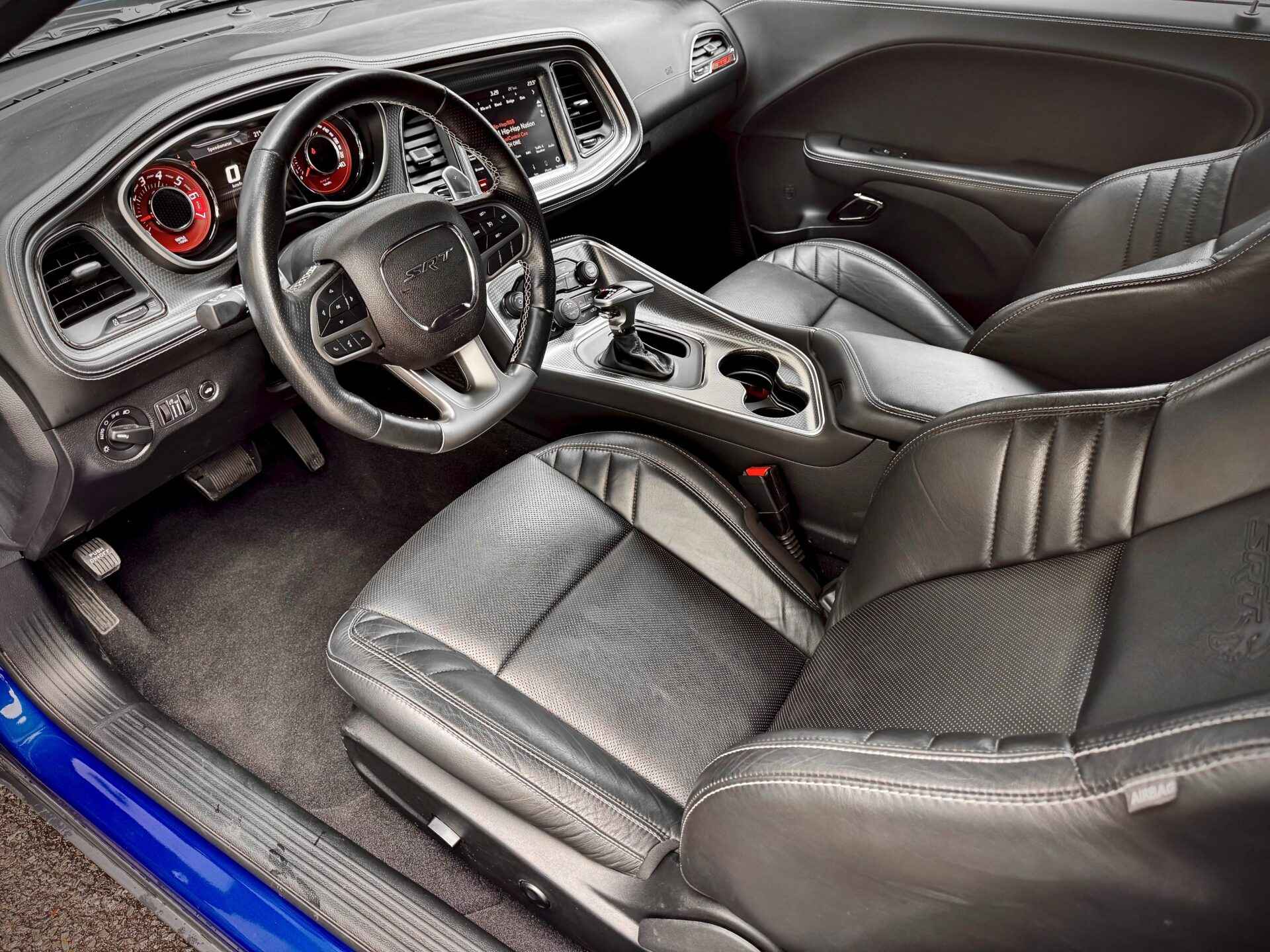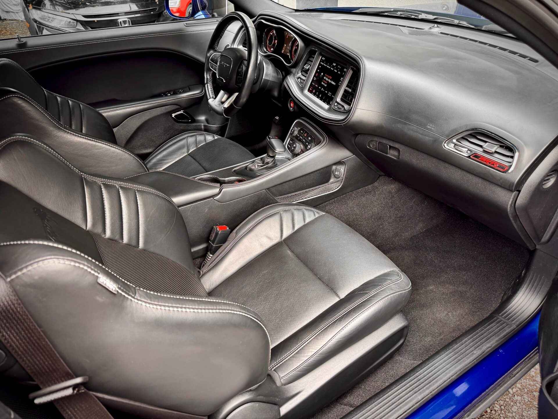 This 2020 Dodge Challenger SRT Hellcat Is Finished In A Beautiful Indigo Blue Exterior And Paired With A Black Laguna Leather. Fully loaded w. True Keyless Entry, Push To Start, 6.2L Engine Producing 707 HP, Navigation, Heated Seats, Vented Seats, HID Headlights, Blind Spot Assist, Harmon Kardon Audio, Laguna Leather Pkg, Power Sunroof, Orange Brake Callipers, Adaptive Damping Suspension, Performance Hood, Illuminated Air-Catcher Headlamps, 8.4 Inch Touch Screen, Apple Carplay, Android Auto, SRT Drive Modes, Parking Sensors, Back-up Camera, & Much More.